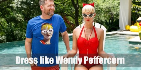 Sun Strider's costume involves a red or dark pink rash guard and shorts, yellow belt, and a visor. Cop a blonde wig, a w...
