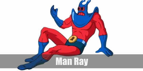 Crimson Chin’s costume is a tight and bright red body suit, a red head cover, and a black eye mask....